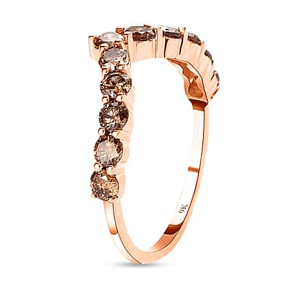 9K Rose Gold Natural Champagne Diamond Wishbone Ring 1.00 Ct.