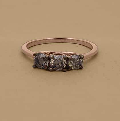 9K Rose Gold Natural SGL Certified Champagne Diamond Trilogy Ring 1.00 Ct