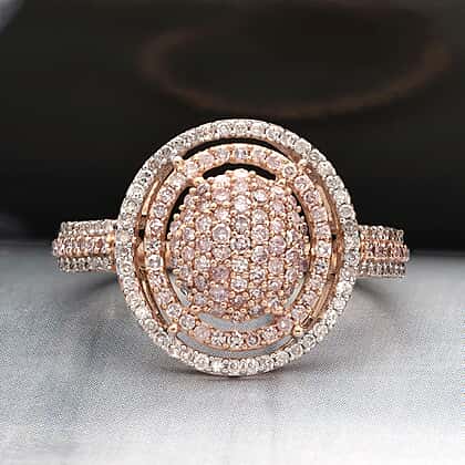 9K Rose Gold Natural White and Pink Diamond Ring 1.00 Ct.