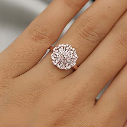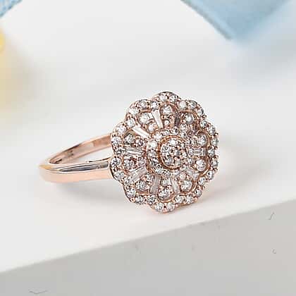 9K Rose Gold Pink Diamond Floral Cluster Ring 0.50 Ct.