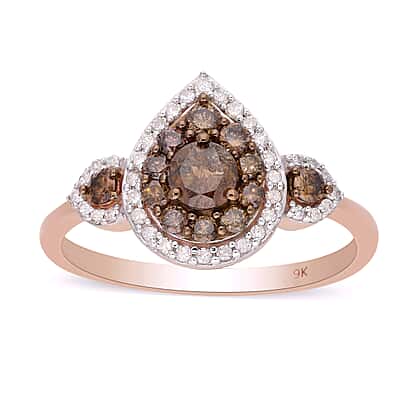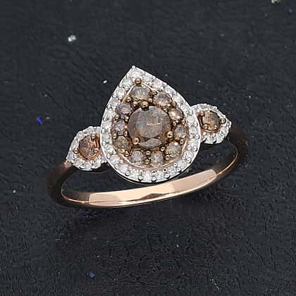 9K Rose Gold SGL Certified Champagne and White Diamond (I3-G-H) Ring 1.00 Ct.