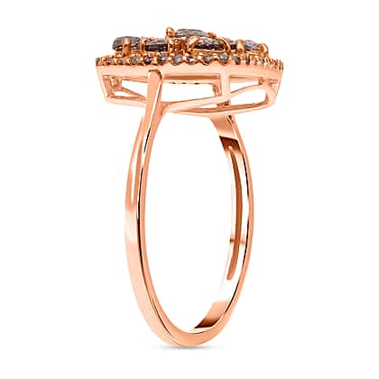 9K Rose Gold SGL Certified Champagne Diamond I1 I2 Cluster Ring 1 Ct