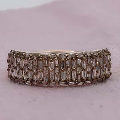 - STONE DETAILS: Ninety-eight baguette cut champagne diamonds deck the design of the half eternity pattern and ensure that the ring displays the muted yet golden sparkling hues of champagne diamonds, all held in a shared prong setting