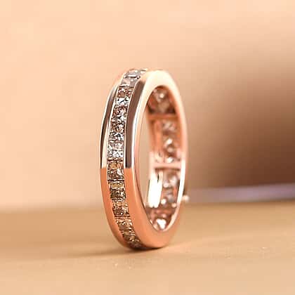 9K Rose Gold SGL Certified Natural Champagne Diamond Full Eternity Ring 2.00 Ct.