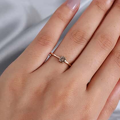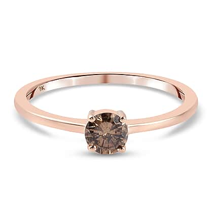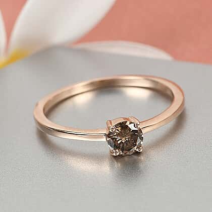 9K Rose Gold SGL Certified Natural Champagne Diamond (I3) Solitaire Ring 0.50 Ct.