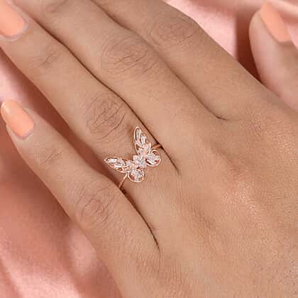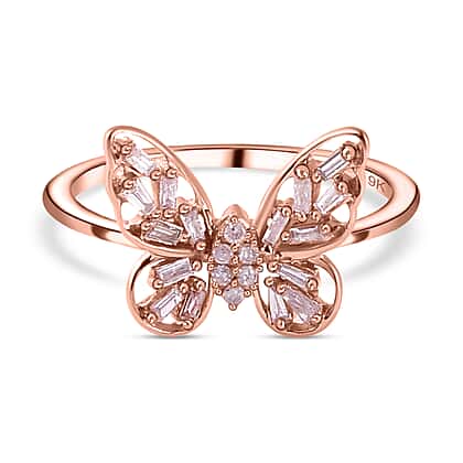 9K Rose Gold SGL Certified Pink Diamond I3 Butterfly Ring 0.20 Ct