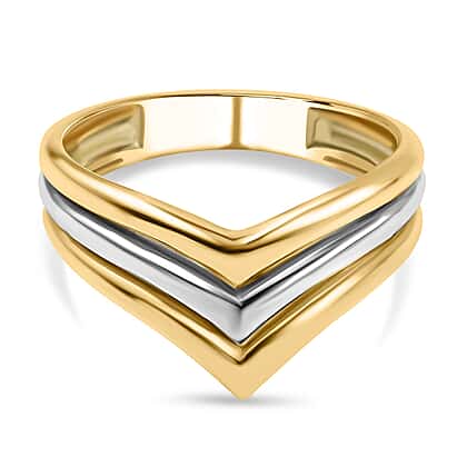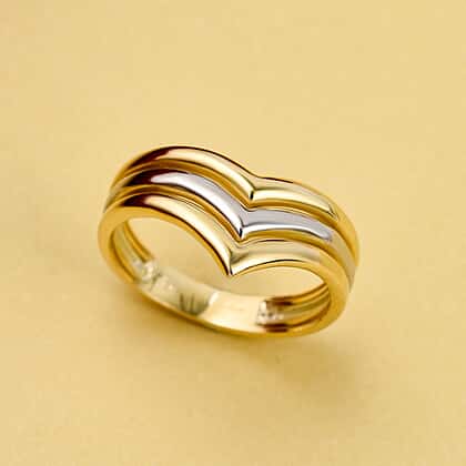 Create a subtle addition to your beautiful personality by draping your finger with the exuberance of this 9K yellow and white gold ring. This ring's charming two-tone gold craft gives it a coveting lustre. The ring has a V-shaped head with three layers of gold, including white in the middle. This design gives it a wishbone style and makes it a beautiful addition to your collection. This ring has a smoothened wearing surface and gives you comfortable wear. Get this beautiful ring for yourself, or gift it to someone special.