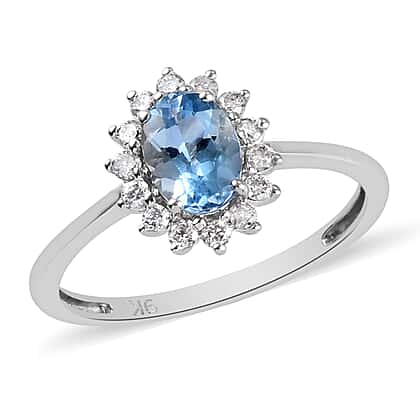 9K White Gold AA Santamaria Aquamarine and Diamond Halo Ring 0.85 Ct.
