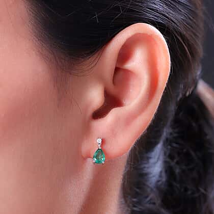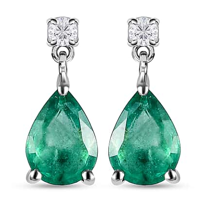 9K White Gold AA Zambian Emerald and White Diamond Dangling Earring (With Push Back)