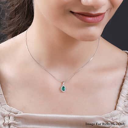 9K White Gold AA Zambian Emerald and Diamond Halo Pendant 0.92 Ct