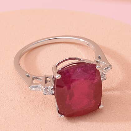9K White Gold AAA African Ruby and Moissanite Ring 8.45 Ct