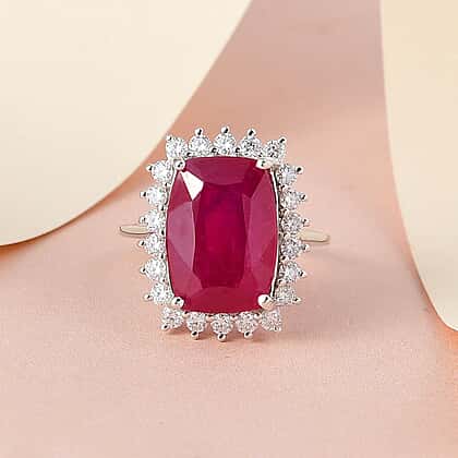 - Cushion-cut natural ruby (14x10mm) weighs 10.980 Carat