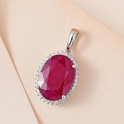 Rare Size 19.57 Ct African Ruby and Moissanite Halo Pendant in 9K White Gold