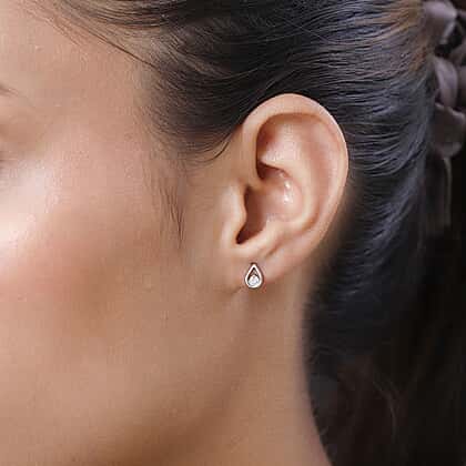 9K White Gold Diamond I3 G H Pear Drop Solitaire Stud Earrings with Push Post 0.19 Ct