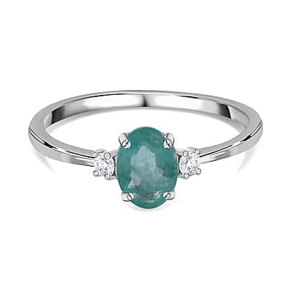 9K White Gold Emerald and Diamond (I3 -G-H) Ring 0.81 Ct