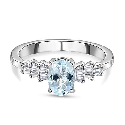 Stack your fingers with alluring Santa Teresa aquamarine and diamond ring and make a lasting impression. This ring is crafted from 9K white gold with a sleek shank design and smooth back gallery to give you a comfortable fit. It is decorated with aquamarine and diamonds secured in a prong setting exuding high sparkle and shine. Wear it on your big day or special day to complement the outfit.