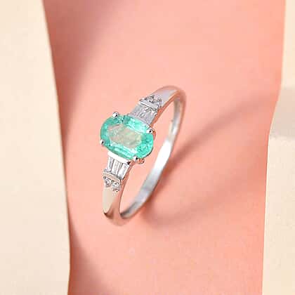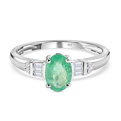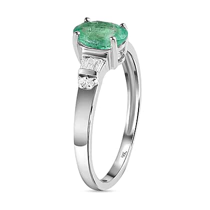 9K White Gold AA Ethiopian Emerald and Diamond Classic Ring 0.80 Ct