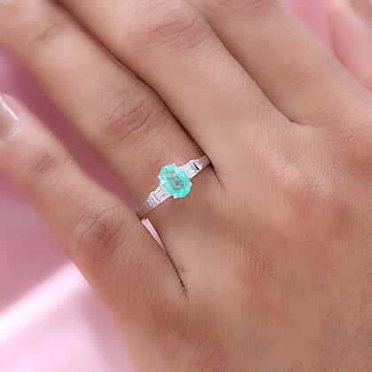 9K White Gold Ethiopian Emerald and Diamond Ring 0.80 Ct.