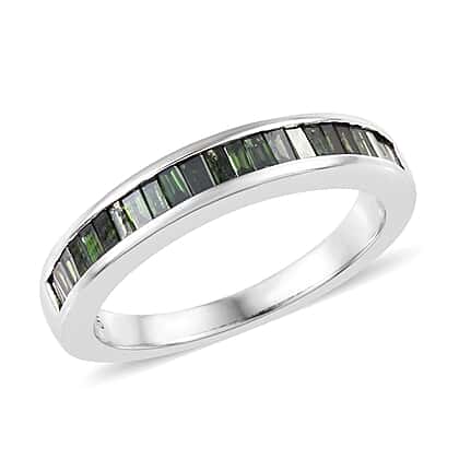 9K White Gold Green Diamond (Bgt) Half Eternity Band Ring 0.500 Ct.