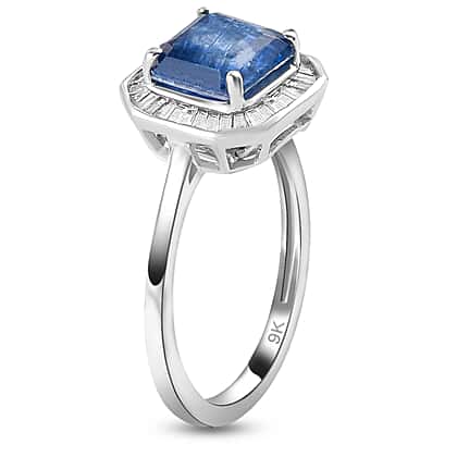 9K White Gold Kyanite (Asscher Cut) and Diamond Ring 2.09 Ct.