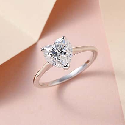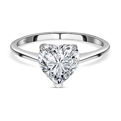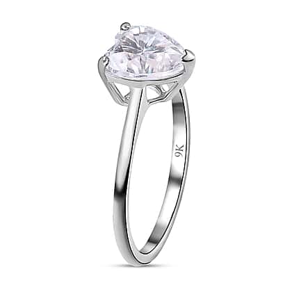 9K White Gold Moissanite Heart Ring 2.02 Ct