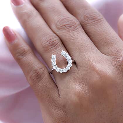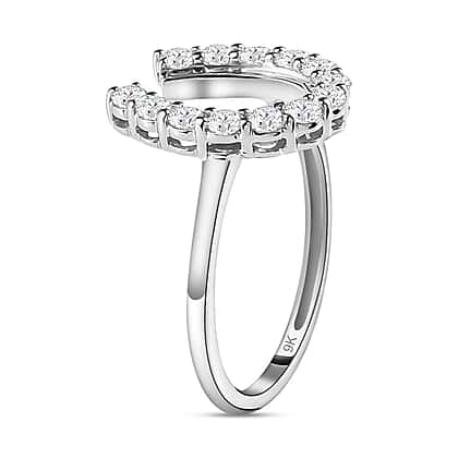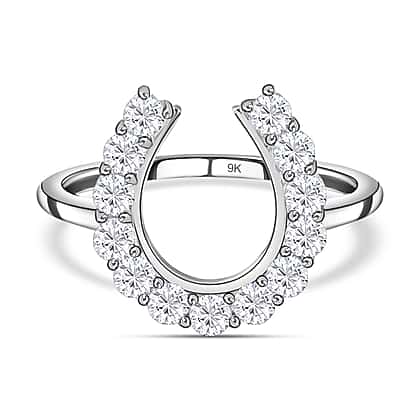 9K White Gold Moissanite Horseshoe Ring 0.64 Ct.
