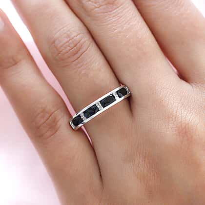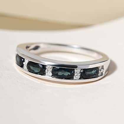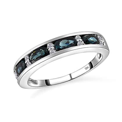 9K White Gold Monte Belo Indicolite and Diamond Half Eternity Band Ring 1.00 Ct.