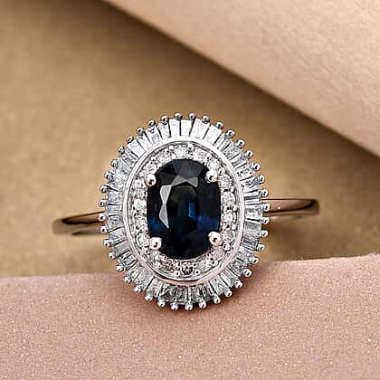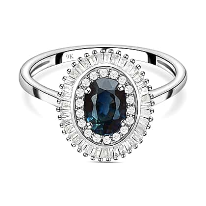 9K White Gold Ocean Teal Sapphire and Diamond Ring 1.22 Ct.