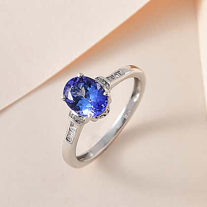 9K White Gold Premium Quality Tanzanite & Diamond Ring 1.53 Ct