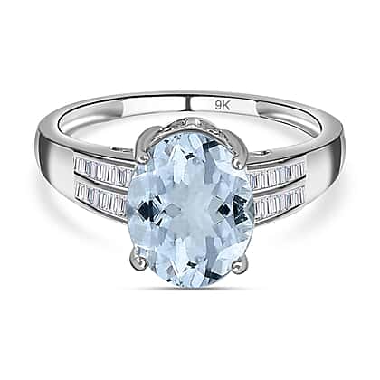 9K White Gold Santa Teresa Aquamarine and Diamond Ring 2.29 Ct.