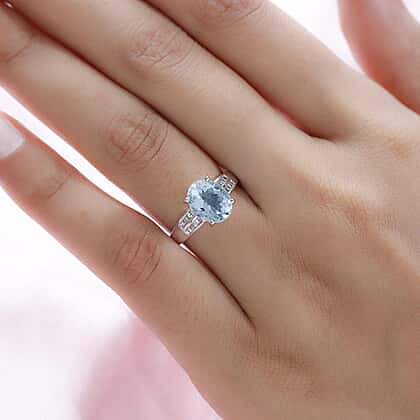 Add a touch of sparkles to your fingers with this Santa Teresa aquamarine and diamond ring. The ring features Santa Teresa aquamarine in the solitaire style set in a four-pronged setting. The beautiful cool blue hues of the aquamarine tone well with the brilliant sparkles of the diamonds. The split shank adds a graceful touch to the ring. Baguette-cut diamonds on the shoulders complete the look of this mesmerising beauty. You can buy this ring for yourself or gift it to someone special.