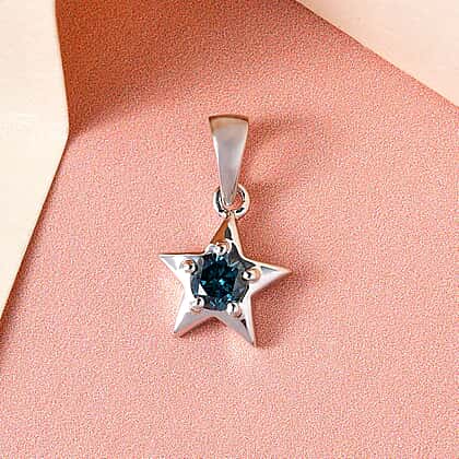 0.23 Ct Blue Diamond Star Pendant in 9K White Gold