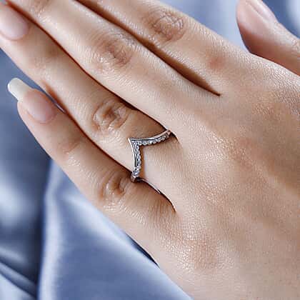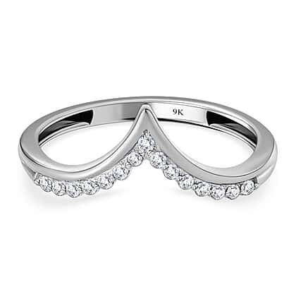 9K White Gold SGL Certified Diamond (G-H) Wishbone Ring 0.15 Ct