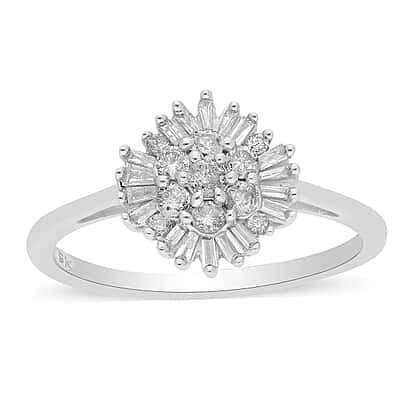 0.50 Ct. SGL Certified I3 G-H Diamond Flower Cluster Ring in 9K White Gold