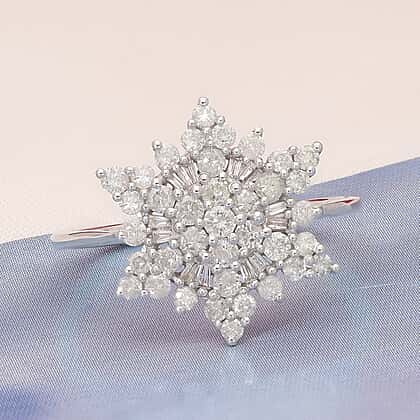 9K White Gold SGL CERTIFIED Diamond (I3/G-H) Snowflake Ring 1.00 Ct.