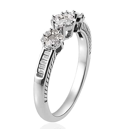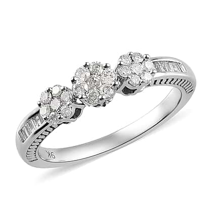 0.50 Carat Diamond Triple Floral Pressure Set Ring in 9K White Gold SGL Certified I3 GH