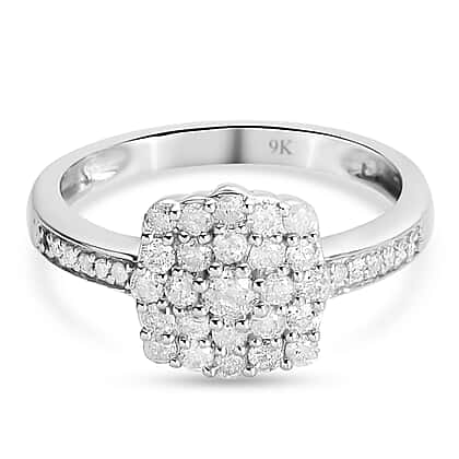 9K White Gold SGL Certified Natural Diamond (I2-I3/G-H) Ring 0.54 Ct.