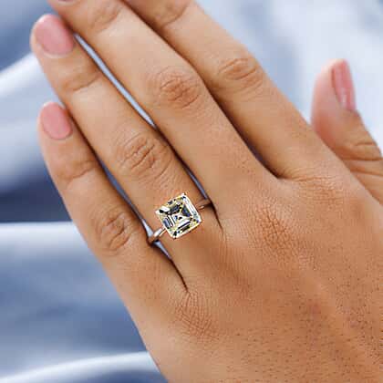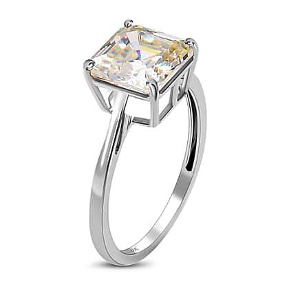 9K White Gold Strontium Titanate (Asscher Cut) Solitaire Ring 6.00 Ct.