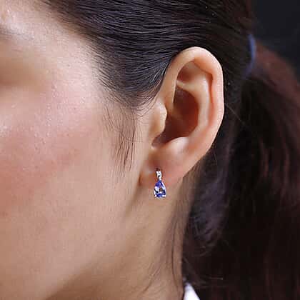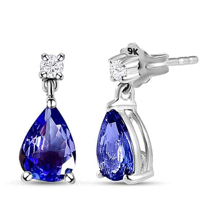 9K White Gold Tanzanite and Diamond (GH) Dangle Earrings 1.29 Ct