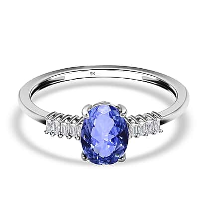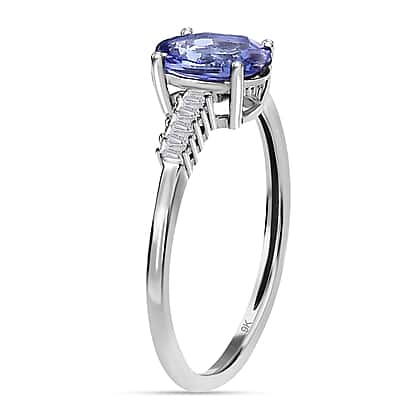 9K White Gold Tanzanite and Diamond Ring 0.98 Ct.