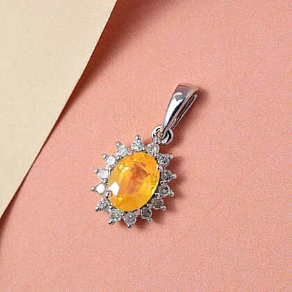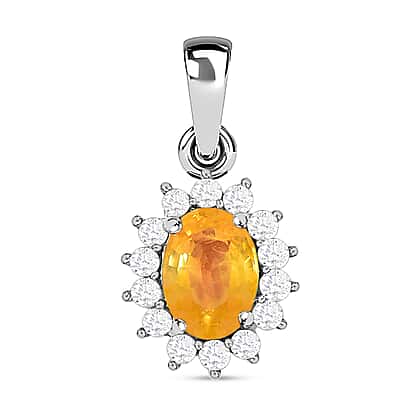 9K White Gold Yellow Sapphire and Diamond (G-H) Pendant 1.24 Ct.