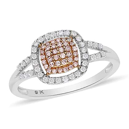0.33 Ct. Natural Pink Diamond and White Diamond Cluster Ring in 9K White Gold