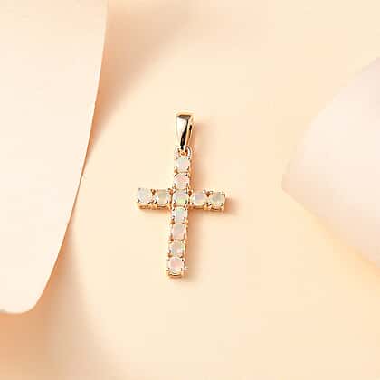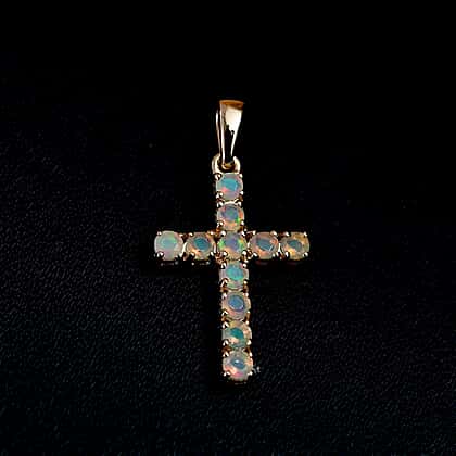 Birthstone Cross Collection - 9K Yellow Gold AA Ethiopian Opal Cross Pendant