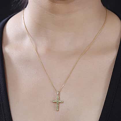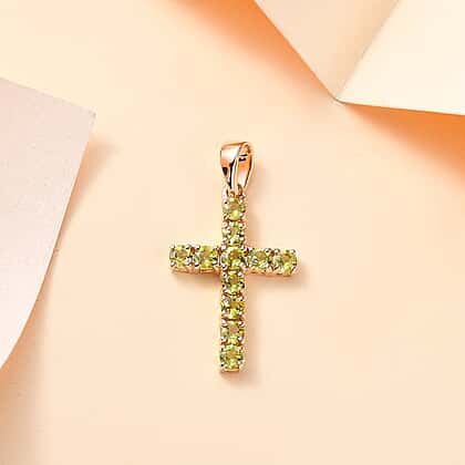 Add a splash of vibrant colour with this AA peridot cross pendant. Known for its bright green hue, peridot symbolises growth, renewal, and prosperity. The round-shaped gemstones are elegantly set in 9K yellow gold, making this cross-inspired pendant a striking and meaningful addition to your collection. It’s a perfect piece to express faith with a fresh, lively touch.