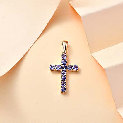 Birthstone Cross Collection - 9K Yellow Gold AA Tanzanite Cross Pendant