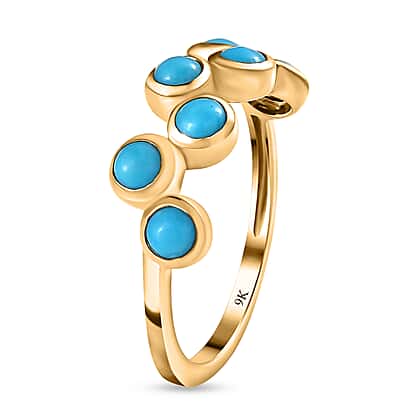 9K Yellow Gold Arizona Sleeping Beauty Turquoise 7 Stone Ring