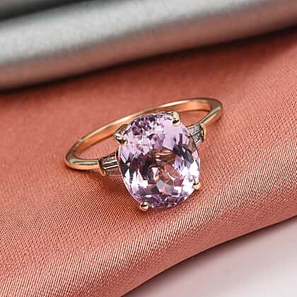 5.1 Martha Rocha Kunzite and White Diamond Ring in 9K Yellow Gold