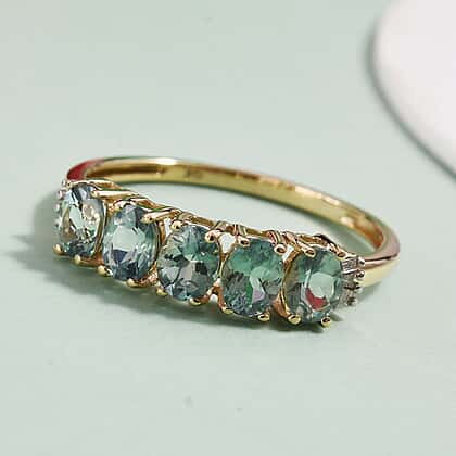 1.25 Ct AA Narsipatnam Alexandrite and Natural Diamond 5 Stone Ring in 9K Yellow Gold