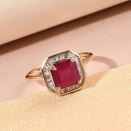 9K Yellow Gold Halo AA African Ruby Ring with Diamond 2.79 Ct.