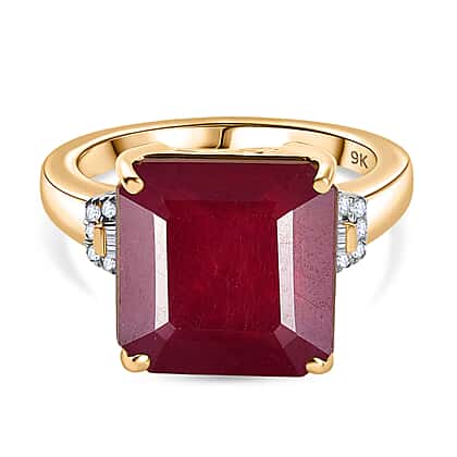 13.6 Ct. Natural African Ruby, White Diamond Ring in 9K Yellow Gold